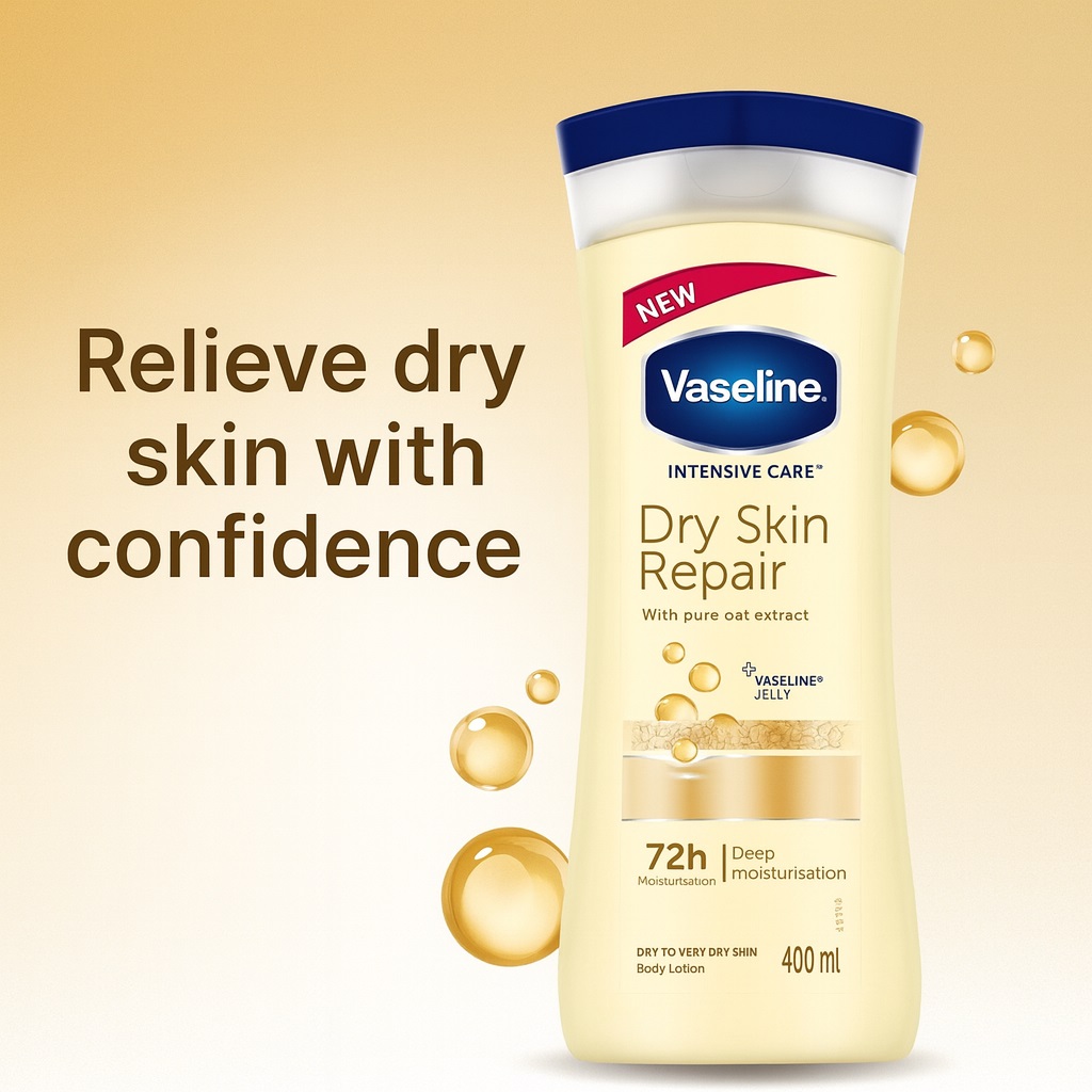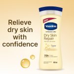 لوسیون بدن ترمیم کننده وازلین Vaseline Intensive Care Dry Skin Repair با فرمولاسیونی غنی از عصاره جو دوسر خالص و ژله وازلین طراحی شده تا پوست خشک و خیلی خشک را عمیقاً آبرسانی و ترمیم کند. این محصول ضمن جذب سریع، بدون ایجاد حس چربی روی پوست، سد دفاعی پوست را تقویت کرده و از پوستهپوسته شدن جلوگیری میکند.