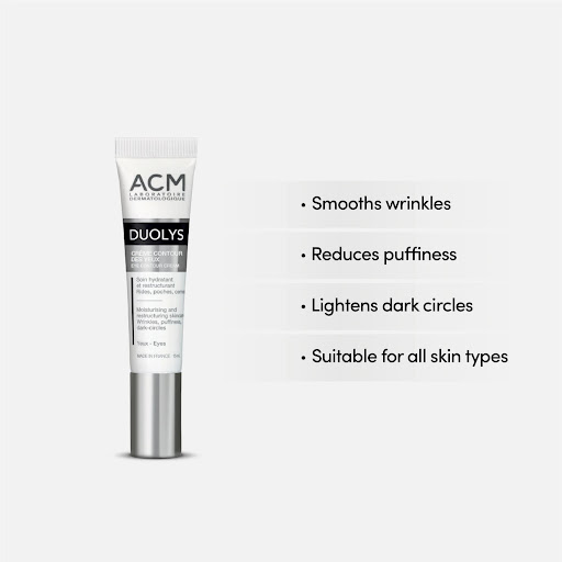 کرم دور چشم ACM Duolys ای سی ام ضد پف،ضدچروک و رفع تیرگی دور چشم مناسب انواع پوست حجم 15 میلی لیتر