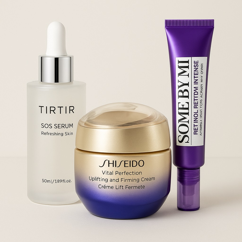 پک 3تایی جوانساز و ضدچروک شامل : سرم SOS تیرتیر + دور چشم رتینول سامبایمی + کرم لیفت شیسیدو برای پوستهایی طراحی شده که به دنبال جوانسازی کامل، کاهش چروکها، سفتی بیشتر و روشنتر شدن پوست هستند. ترکیب سرم SOS تیرتیر، کرم دور چشم رتینول سامبایمی و کرم لیفت شیسیدو یک روتین حرفهای ضدپیری میسازد که پوست را عمیقاً آبرسانی، لیفت و بازسازی میکند.