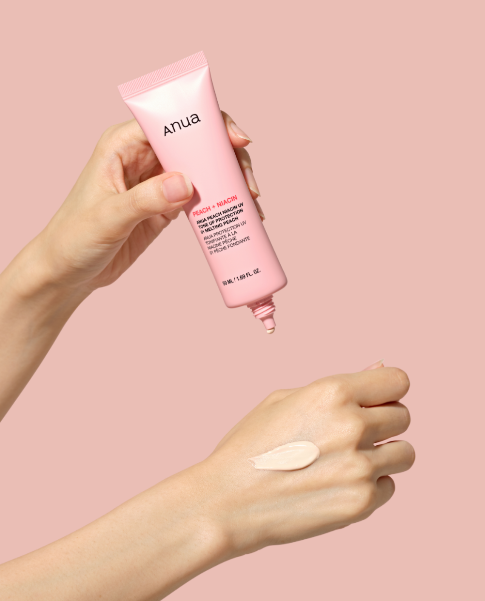 کرم ضدآفتاب SPF 50 و روشنکننده آنوا Anua Peach Niacin UV Tone-Up Protection با ترکیب عصاره هلو، نیاسینامید و ویتامین B12، علاوه بر محافظت قدرتمند در برابر اشعههای مضر خورشید (SPF50+ PA++++)، پوست را روشنتر و شفافتر میسازد. این کرم بافتی سبک و زودجذب دارد و بهعنوان پایه آرایش (makeup base) نیز عالی عمل میکند.
