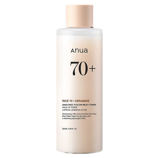 تونر برنج آبرسان آنوا مدل Rice 70+ Ceramide و روشن کننده پوست صورت حجم 250 میلی لیتر