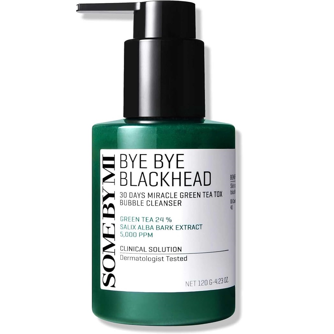 فوم شوینده چای سبز حبابی سام بای می Bye Bye Blackhead 30 Days Miracle Green Tea Tox از برند کرهای SOME BY MI محصولی چندکاره برای کنترل چربی، پاکسازی عمقی منافذ و کاهش جوشهای سرسیاه است. این شوینده با فرمول حبابی خود، در کمتر از ۵ دقیقه پوست را از آلودگی و سبوم اضافی پاک کرده و با ترکیب عصاره چای سبز ۲۴٪ و پوست درخت بید (۵۰۰۰ppm) باعث تسکین و نرمی پوست میشود.