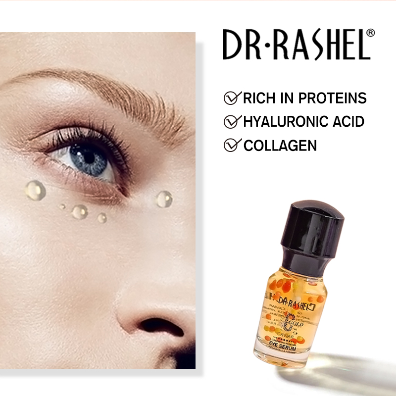 سرم ضدچروک و روشنکننده دور چشم دکتر راشل Dr Rashel Gold Caviar Eye Serum با فرمولی غنی از عصاره خاویار طلایی، هیالورونیک اسید و کلاژن، پوست حساس اطراف چشم را تغذیه و بازسازی میکند. این سرم با تحریک متابولیسم پوست، به کاهش خطوط ریز و پف زیر چشم کمک کرده و در عین حال باعث روشنی و استحکام پوست میشود.