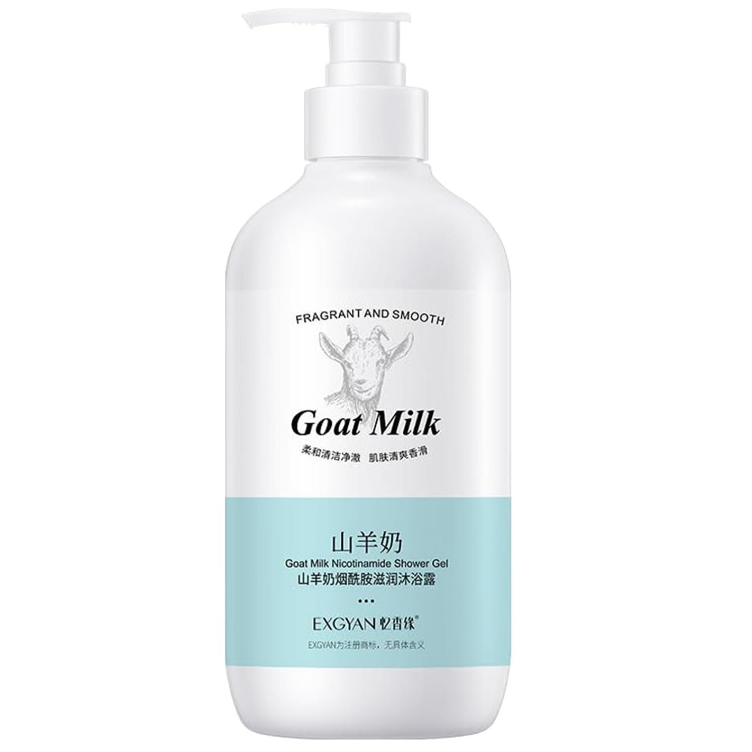 شامپو مرطوبکننده و روشنکننده پوست بدن اکسجیان مدل شیر بز و نیکوتینامید مناسب برای انواع پوست حجم 500 میلی لیتر