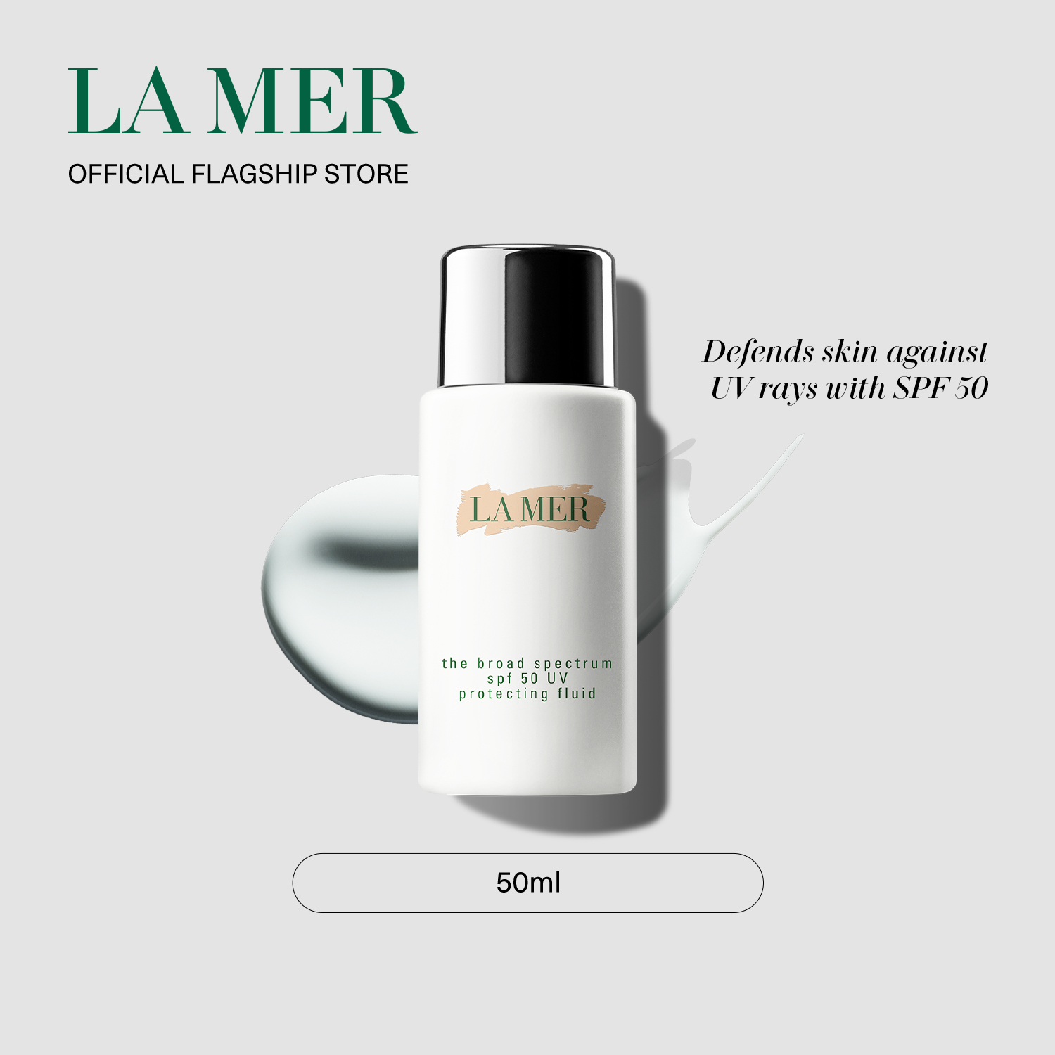 کرم ضد آفتاب فلوئید لامر SPF 50 La Merمحافظت کامل در برابر اشعه UV مناسب انواع پوست حجم 50 میلی لیتر
