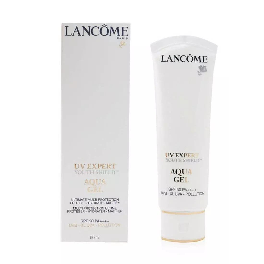 ژل ضد آفتاب لانکوم Lancôme UV Expert Youth Shield Aqua Gel SPF 50 PA++++ یک ضدآفتاب چندکاره است که محافظت کامل، آبرسانی عمیق و درخشش طبیعی را در یک محصول ارائه میدهد. این ژل کرمی سبک با فناوری محافظتی پیشرفته از پوست در برابر آسیبهای ناشی از آفتاب (UVB/UVA) و آلودگیهای شهری محافظت میکند و مانع ایجاد لک و تیرگی میشود. با فرمول ماتکننده و بدون چربی، برای پوستهای مختلط، چرب و حساس کاملاً مناسب است.