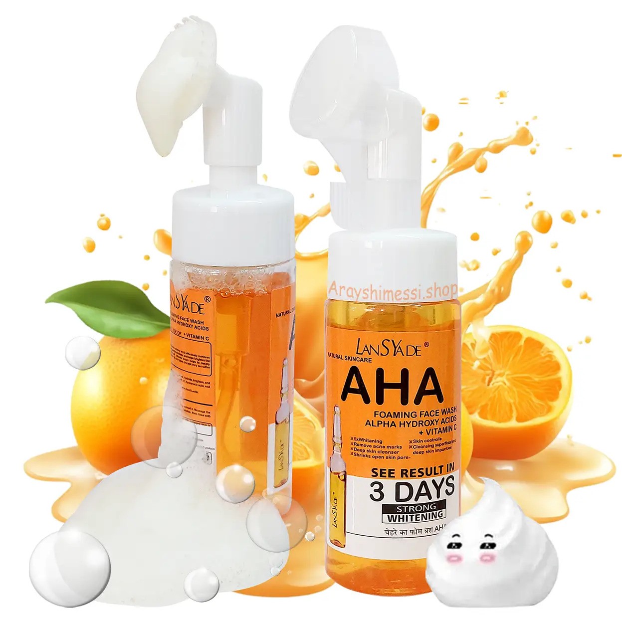 فوم شستشوی براش دار صورت لانس‌یاد مدل AHA حاوی ویتامینC مناسب برای انواع پوست حجم 150 میلی لیتر