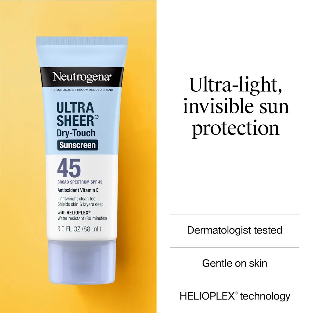 کرم ضد آفتاب SPF 45 نوتروژینا Ultra Sheer Dry-Touch یکی از پرفروش‌ترین محصولات مراقبت از پوست است که توسط متخصصان پوست توصیه می‌شود. این کرم با فناوری Helioplex محافظت گسترده‌ای در برابر اشعه‌های مضر خورشید ایجاد کرده و در عین حال بافتی بسیار سبک، غیرچرب و زودجذب دارد. مناسب برای استفاده روزانه در تمام فصول سال و قابل استفاده زیر آرایش.