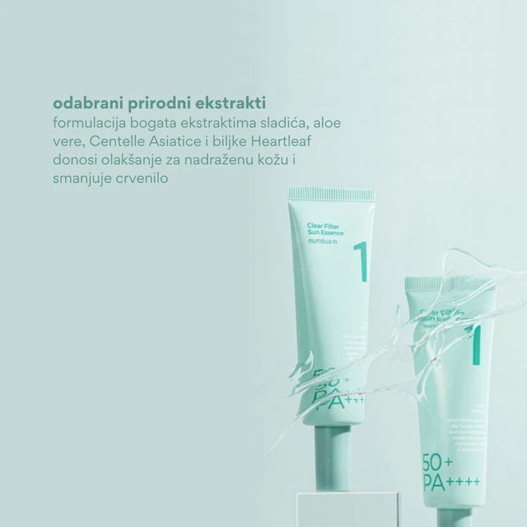 اسنس ضدآفتاب 01 clear filter نامبوزینspf50 با فرمول سبک و آبرسان خود، پوست را در برابر اشعههای مضر خورشید (UVA/UVB) محافظت میکند. این محصول برای پوستهای حساس طراحی شده و بدون عطر، بدون اکتینوکسیت و بدون اکسـیبنزون است. بافت آن بسیار سبک بوده و هیچ احساس چربی یا سنگینی روی پوست ایجاد نمیکند، در عین حال باعث آرامش پوستهای تحریکپذیر میشود.