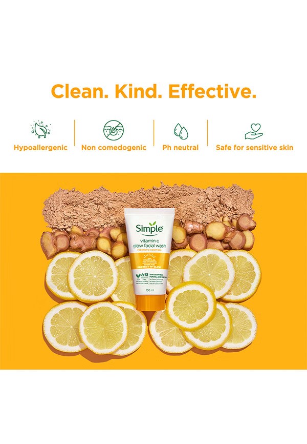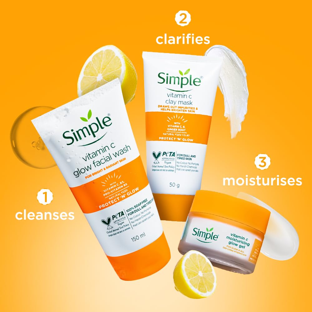 ژل شستوشوی صورت ویتامین سی C سیمپل Simple Protect N Glow Vitamin C یکی از پرفروشترین شویندههای برند سیمپل انگلیس است که مخصوص پوستهای خسته، کدر و بیروح طراحی شده است. فرمول سبک و ملایم آن با ترکیب ویتامین C، آنتیاکسیدانها و خاک رس طبیعی، به پاکسازی عمقی منافذ کمک میکند و پوست را به طور طبیعی روشن و درخشان میسازد. این محصول ۱۰۰٪ فاقد صابون، الکل، پارابن و عطر مصنوعی است و برای پوستهای خشک و حساس نیز کاملاً ایمن است.