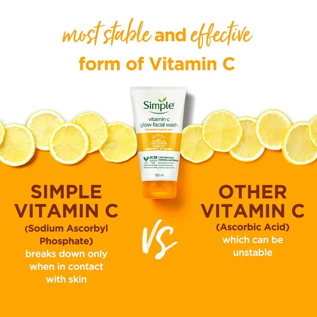 ژل شستوشوی صورت ویتامین سی C سیمپل Simple مدل Protect N Glowروشنکننده و ضدکدر شدن پوست مناسب پوست حساس حجم 150 میلی لیتر