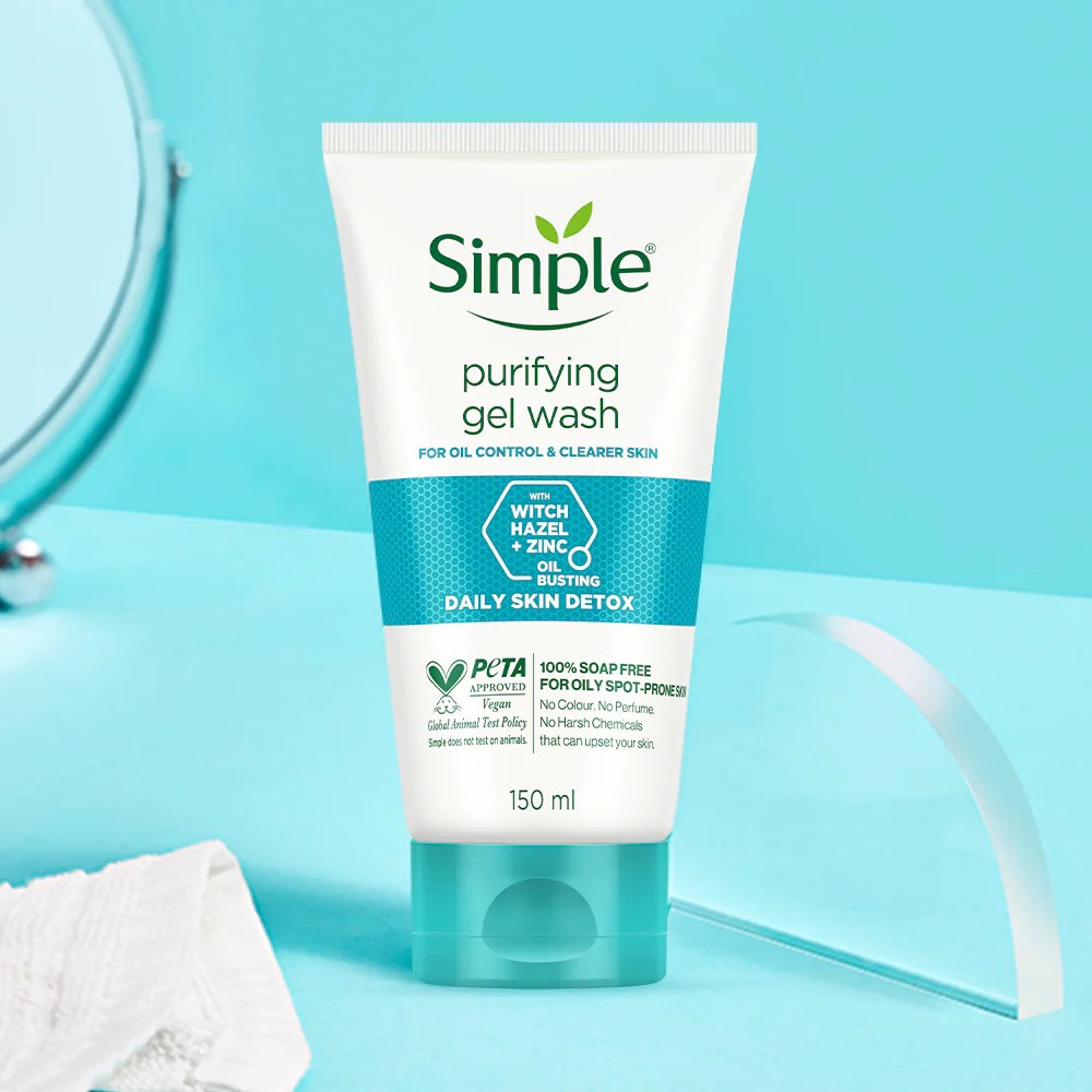 ژل شست‌وشوی ضد جوش سیمپل Simple Purifying Gel Wash Daily Skin Detox محصولی تخصصی از برند انگلیسی سیمپل است که مخصوص پوست‌های چرب و جوش‌دار طراحی شده. این شوینده با ترکیب مؤثر زینک (روی) و عصاره هاماملیس (witch hazel) به‌طور عمیق منافذ را پاکسازی کرده، چربی اضافی پوست را کنترل می‌کند و مانع ایجاد جوش‌های جدید می‌شود. فرمولاسیون سبک و بدون صابون آن باعث می‌شود پوست بدون احساس خشکی یا کشیدگی، تمیز و شاداب باقی بماند.