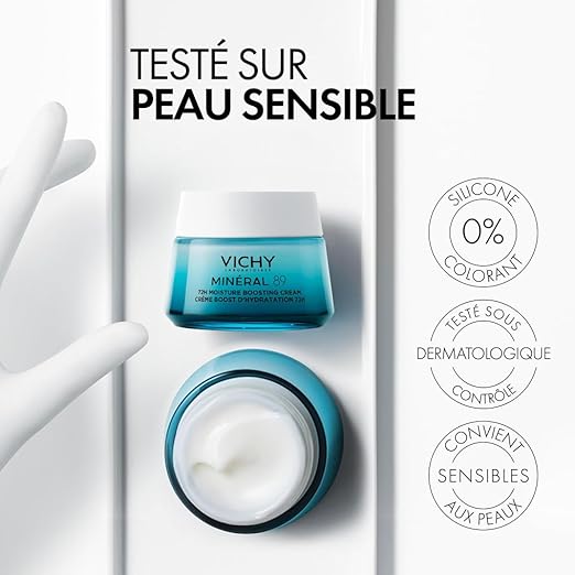 کرم آبرسان 72 ساعته ویشی Vichy Minéral 89 72H Moisture Boosting Cream یک آبرسان روزانه با فرمول مینیمال و علمی است که برای تأمین رطوبت پایدار پوست تا 72 ساعت طراحی شده است. این محصول با ترکیب هیالورونیک اسید خالص و مواد معدنی آب چشمه ویشی، به تقویت سد دفاعی پوست کمک کرده و از دهیدراته شدن پوست در اثر آلودگی، استرس و شستشوی مکرر جلوگیری می‌کند. بافت سبک و زودجذب آن باعث می‌شود بدون ایجاد حس چربی یا سنگینی، برای استفاده روزانه و حتی زیر آرایش کاملاً مناسب باشد. این کرم برای پوست‌های حساس تست شده و گزینه‌ای امن برای مصرف مداوم است.
