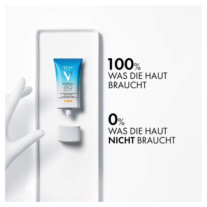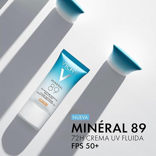ضدآفتاب و مرطوب‌کننده ویشی مینرال 89 Vichy Mineral 89 SPF50 یک فرمول ترکیبی از آبرسان قوی و محافظ UV است که برای استفاده روزانه طراحی شده. این محصول علاوه بر محافظت کامل در برابر اشعه‌های UVA و UVB، آبرسانی ۷۲ ساعته ارائه می‌دهد و باعث تقویت سد دفاعی پوست می‌شود. بافت آن بسیار سبک، زودجذب و فاقد چربی است و حتی روی پوست حساس یا مختلط بدون ایجاد برق یا سنگینی می‌نشیند. وجود هیالورونیک اسید + آب معدنی ویشی باعث حفظ رطوبت، کاهش خشکی و ایجاد حس تازگی روی پوست می‌شود.